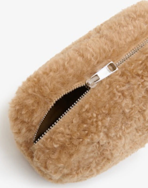 A pouch to keep all your essentials warm. This style is made in bouclette. 5" X 7.8" X 3"